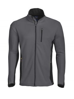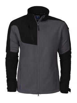 A handy microfleece jacket in an attractive, technical fleece material with smooth outside that makes it easier to keep clean. Shoulders and sleeves are reinforced with softshell. One breast pocket and side pockets with zip.