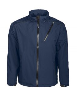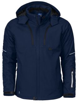 Wind and waterproof jacket with good breathable properties and taped seams. Breast pocket with mobile telephone pocket and opening for headset. Water resistant zip. Collar with inset hood. Two side-pockets. Adjustable waist with drawstring and adjustable cuff. Dark reflective piping in the yoke.