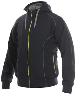 Sweatshirt with zip. Zip side pockets with softshell reinforcement. Ribbed cuffs and waist.