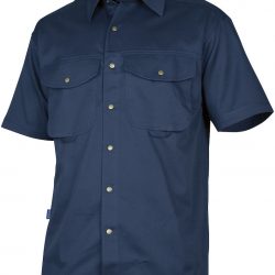 Short-sleeved shirt with press studs. Two large breast pockets with bellow pleat. Adjustable cuffs with two press studs. Sleeve designed for optimal freedom of movement. Double yokes and two pleats in back.